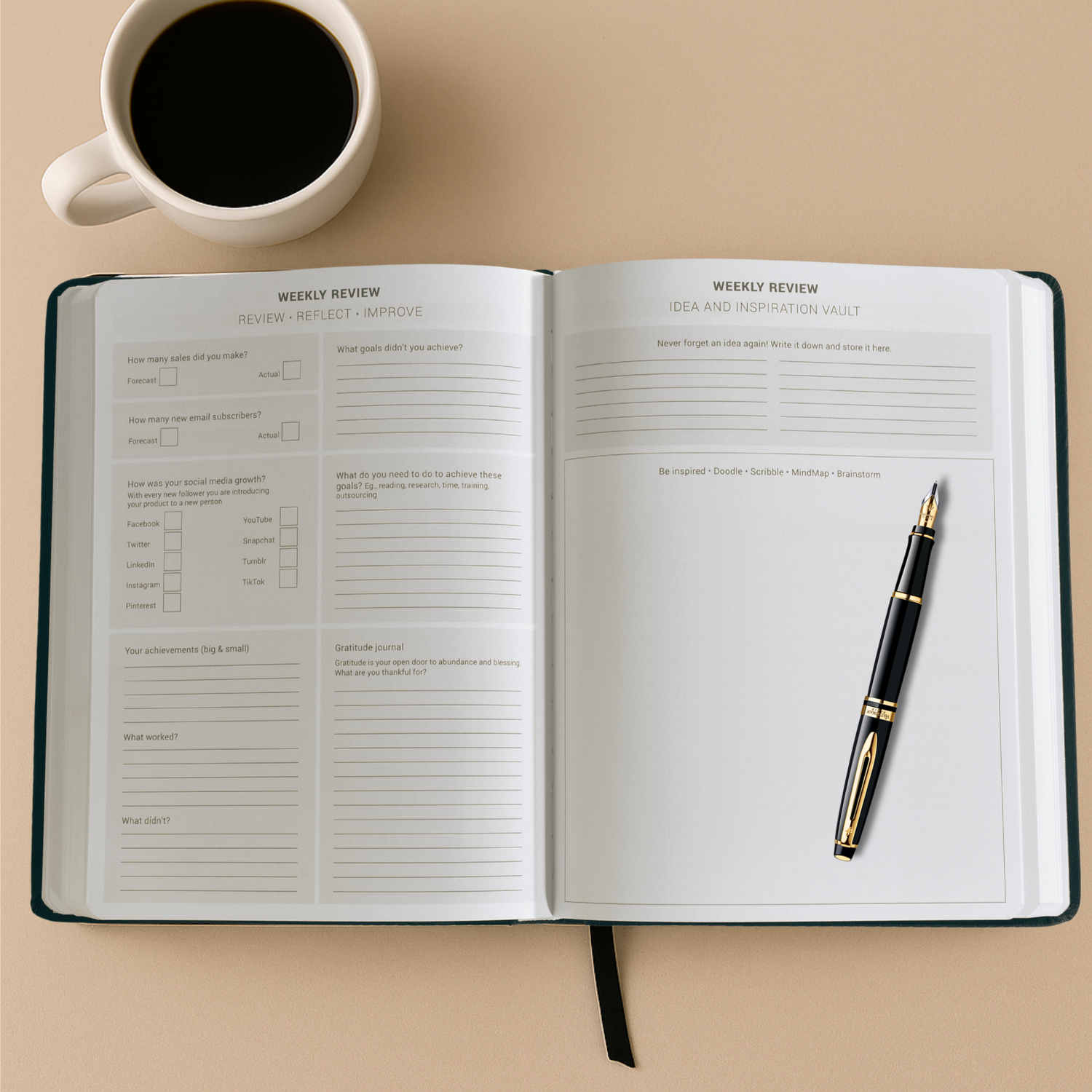 - Gratitude, ideas and notes pages
